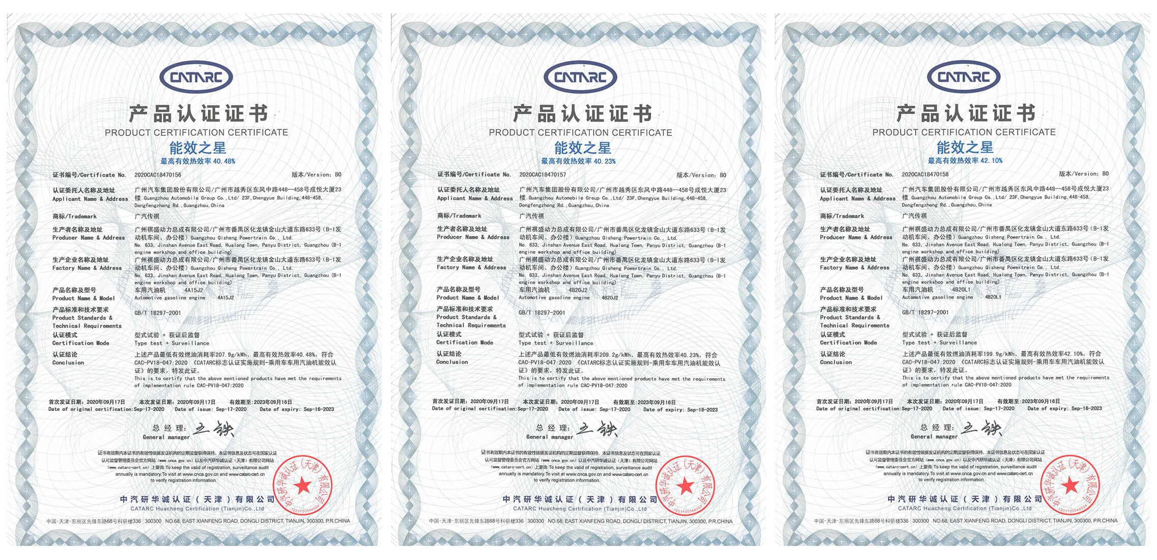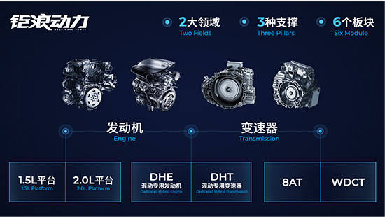发动机领域,构建了G/GS发动机平台,排量覆盖1.0~2.0L,应用350bar高压直喷、广汽GCCS燃烧控制系统、EGR、水冷中冷、热管理模块等先进技术,具备高效率、低油耗等优势。